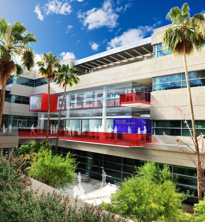 The Eller Professional Development Center on the University of Arizona is part of a comprehensive strategy by the business school to better prepare tomorrow’s innovative leaders for the rapidly changing business environment of the early 21st century. The two story concept evolved to be purposefully more transparent and collaborative to welcome and encourage interaction between the professional world and students.