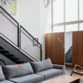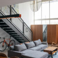 Designed for the architect’s family, the project creates a welcoming platform for entertaining and daily living that centers on basic function and lightness. Critical to the scheme was creating a new lighting approach that used direct lighting at cooking and reading areas with more subdued indirect illumination at the wood ceiling and living areas of the loft.