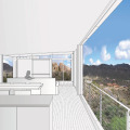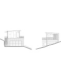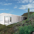 This house for a young couple on a desert hillside is commanding in both its topography and surrounding views. The dramatic slope encourages a minimal footprint and stacked space. With a strong horizontal character and minimalist forms, the structure slides between saguaros and floats over the site. A masonry base is a perch on which the slender steel residence balances itself above the land. Prominent views to the east and a significant rock out-cropping are captured and inform the residence’s orientation and placement of apertures.