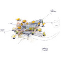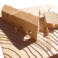 The rugged and jagged exterior forms a stark contrast to the smooth and controlled interior. Some elements like the vertebrae stair, however, reinterpret the craggy desert into a functional element while interjecting the rustic vocabulary of the building skin into the interior.