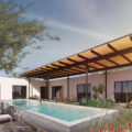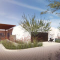 The Terraza Moderna homes combine the best of old and new to create six premiere private residences that emphasize indoor/outdoor living. Central to the scheme is a large canopy that extends the living areas outside to the landscape courtyard. Lush desert landscape pulls from the existing mesquite, palo-verde, cacti and creosote of the existing surrounding landscape to incorporate this into the project and individual homes. An architectural vocabulary of simple, exterior plaster masses with punched openings responds contextually to the historic adobe homes of the Old Fort Lowell Neighborhood.