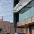 Another key sustainable element employed in the design of Trinity is proper orientation and shading of glass. Vertical fins shade the east and west facades from the harsh desert sunlight while allowing views out and light in. At the south façade of floor to ceiling glass with views to the historic neighborhood and mountain vistas, horizontal shade elements cantilever out from the building to shade the glass during hot months while allowing direct light to enter the building during the wintertime. Combined with enhanced insulation, this passive approach to controlling heat gain allows for lower utility bills and higher thermal comfort for the building users.