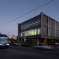 The building is sited on a former underutilized asphalt parking lot, turning what was a heat island, into an urban oasis with lush desert landscaping. Permeable pavement for much of the parking area allows water to go into the ground and replenish the aquifer. For those who do need to drive to work, electric car charging stations are available on site. The project also features a naturally lit stairwell positioned just off the elevator lobby to encourage pedestrian circulation.